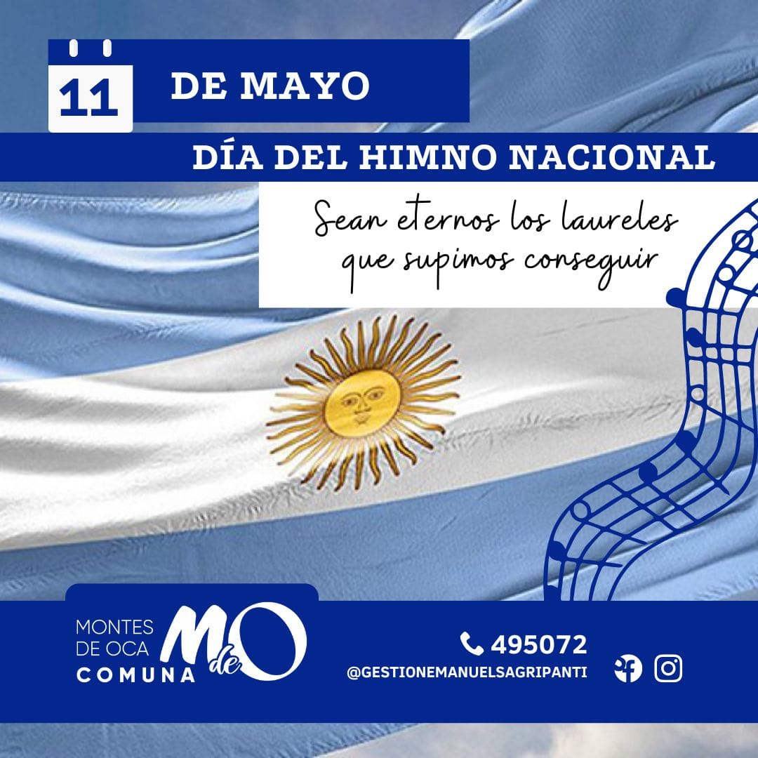 El 11 de mayo de 1813 la Asamblea General Constituyente sancionó como “Himno” a la marcha patriótica escrita por Vicente López y Planes con música de Blas Parera. 𝐴𝑙 𝑔𝑟𝑎𝑛 𝑝𝑢𝑒𝑏𝑙𝑜 𝑎𝑟𝑔𝑒𝑛𝑡𝑖𝑛𝑜… 𝑆𝑎𝑙𝑢𝑑! #ComunadeMontesdeOca#GestiónEmanuelSagripanti